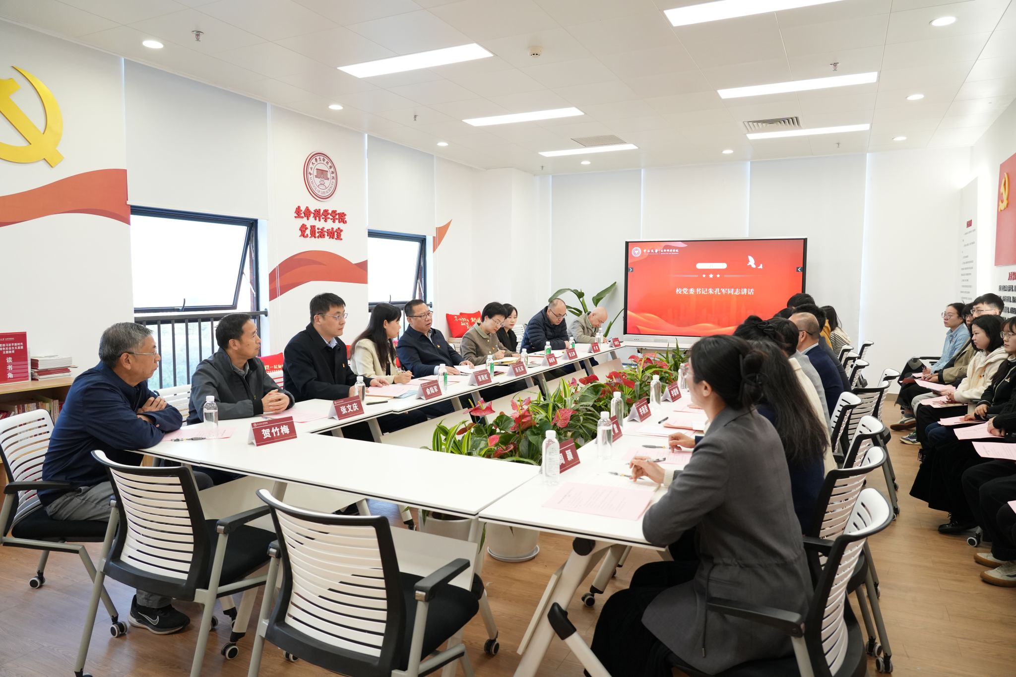 會后,朱孔軍書記一行在學院黨政領導班子、支部黨員的陪同下參觀了生命科學學院院史館。