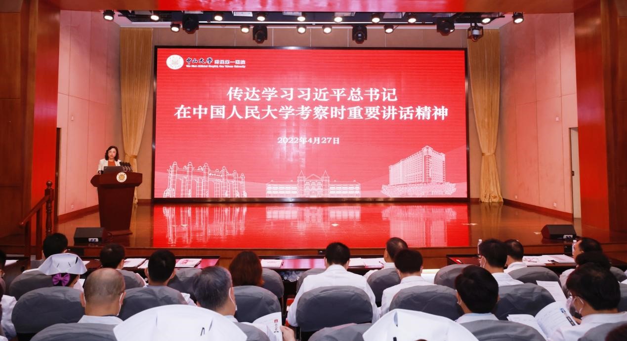 中大新聞網廣州4月28日電(通訊員黃佳聰、陳安琪)在五四青年節即將到來之際,習近平總書記4月25日來到中國人民大學考察調研并發表重要講話,對高校師生和廣大青年提出殷切期望。中山大學附屬第一醫院迅速掀起學習熱潮。4月27日下午,院例會將學習習近平總書記在中國人民大學考察時的重要講話精神作為第一議題,全體與會人員共同收看相關新聞報道,認真學習貫徹講話精神。習近平總書記的重要講話在醫院師生員工中引發熱烈反響,大家紛紛表示將更加堅定不移聽黨話、跟黨走,在實現中華民族偉大復興的時代洪流中踔厲奮發、勇毅前進。