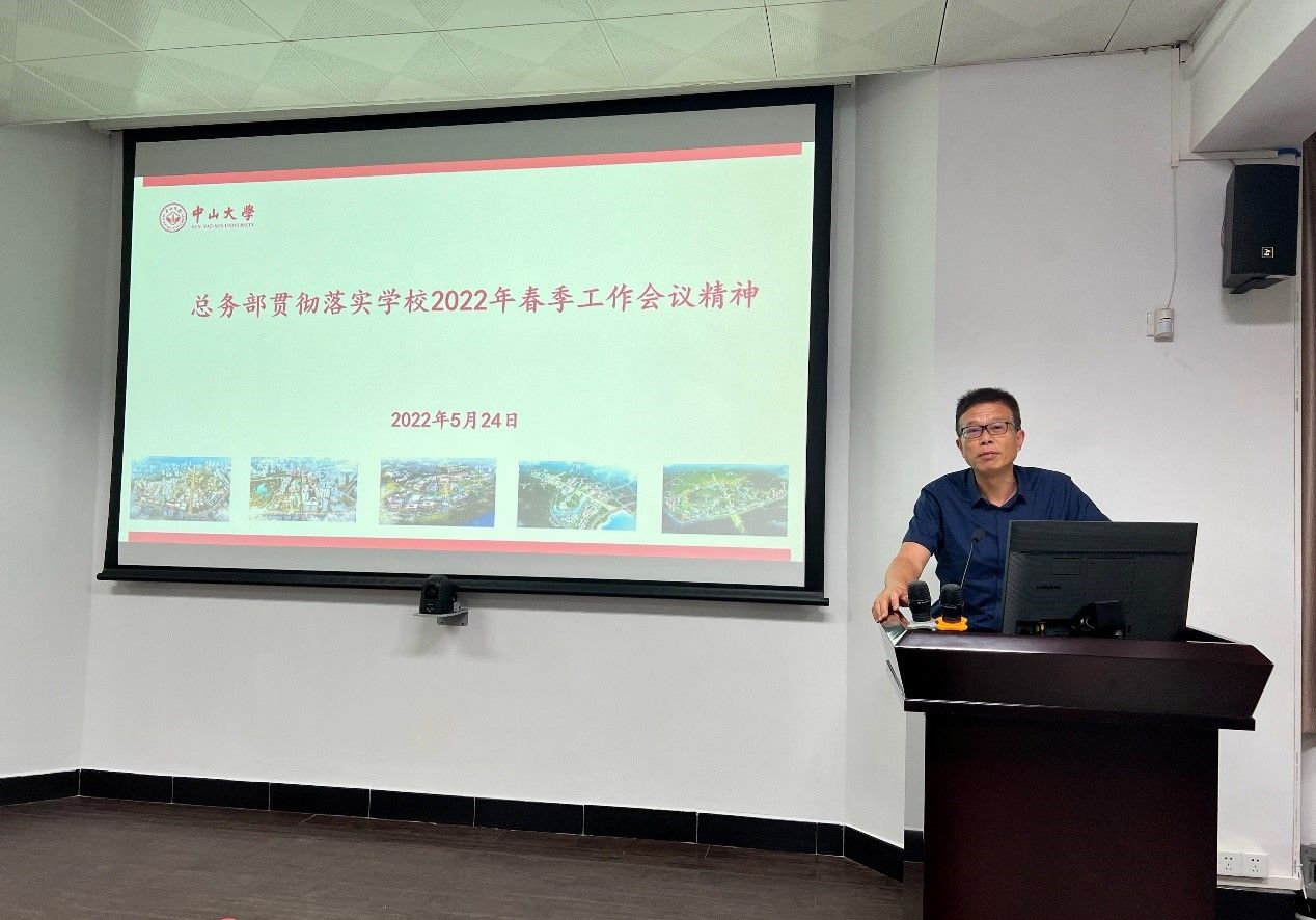 中大新聞網廣州5月27日電(通訊員李石圳)5月24日,總務部在廣州校區南校園第三教學樓213會議室召開全部大會,深入學習貫徹落實學校2022年春季工作會議精神。會議由總務部黨總支書記胡海峰主持,總務部全體人員參會。