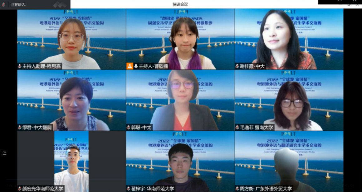 2022“全球觀 家國情”粵港澳外語與翻譯研究生學術交流周前身為粵港澳外語與翻譯研究生學術論壇,經(jīng)過七年的發(fā)展,活動不斷走向成熟,成為三地青年學子交流學術、增進友誼的橋梁。本屆學術交流周既契合粵港澳大灣區(qū)發(fā)展背景,助力粵港澳地區(qū)協(xié)同發(fā)展,也在促進粵港澳師生交流學術文化、培養(yǎng)外語人才、弘揚家國情懷方面發(fā)揮了重要作用。