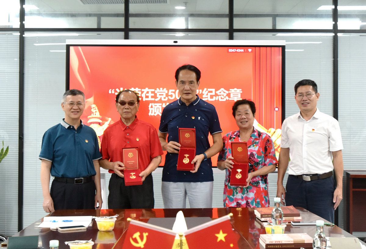 梁建、林賢嬌、劉泉新三位老黨員代表獲頒“光榮在黨50年”紀念章(來源:附屬第八醫院)