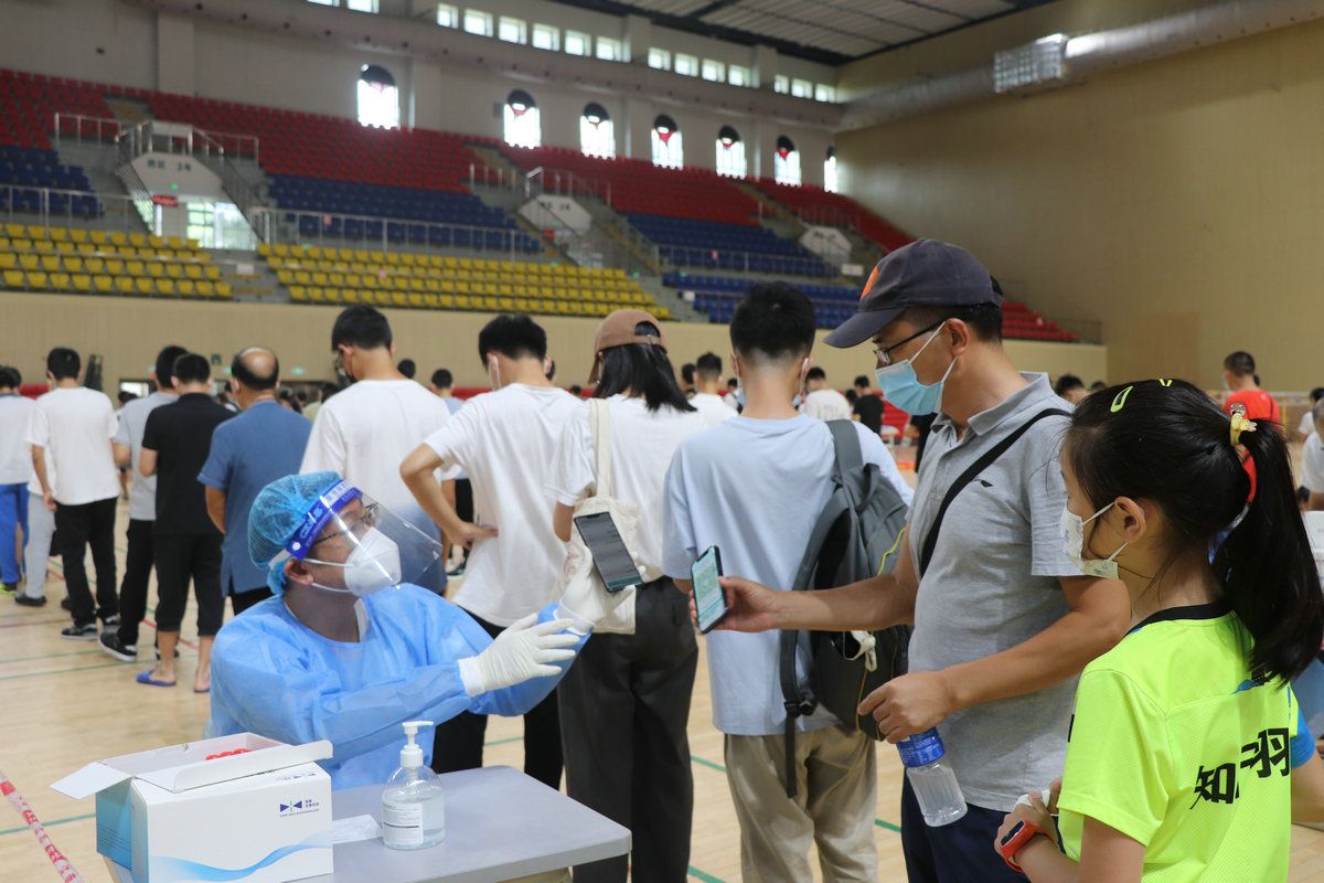 “當穿上藍色的防護服,帶上醫用手套、N95口罩和防護面罩,我能清晰地聽到自己的呼吸聲。體育館里冷氣很足,身上冷視線又模糊,加上戴著手套給手機操作帶來了不便。”一位掃碼志愿者感慨道,從來沒穿過防護服,體會過后深感不易。