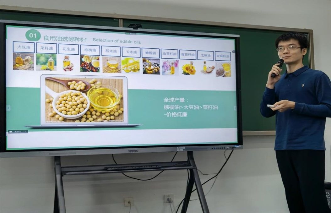 王東皓副教授以“油脂與健康”為題,深入淺出地講解了生活中食物油的種類和特點,如何選擇、合理攝入量和食用方式,特別強調了煎炸食品和氫化植物油的危害;從食品營養的角度分析了補充DHA的必要性、理性判斷巧克力的營養價值等熱點問題,并提出了不要長時間食用同一種食物油,合理引入高油酸、高亞麻酸食用油及調和油的建議。