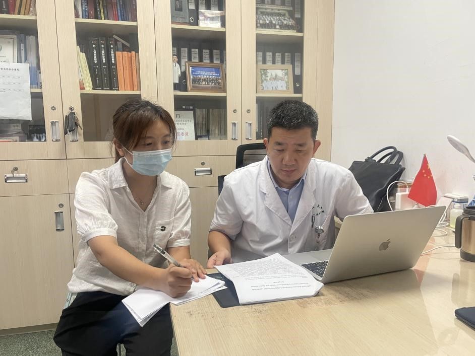 沈君主任指導(dǎo)邱婭醫(yī)生進(jìn)行科研寫作