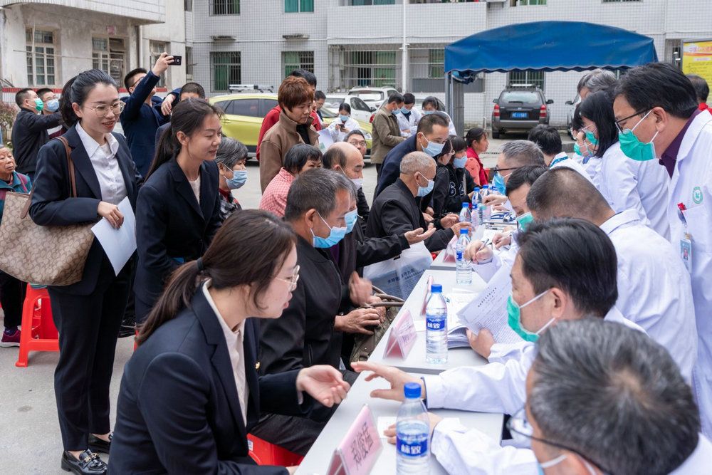 揭牌儀式和參觀結束后,由孫逸仙紀念醫院院長助理、神經科主任唐亞梅教授,肝膽外科主任陳亞進教授,乳腺腫瘤中心主任劉強教授,腎內科主任楊瓊瓊教授,心血管外科主任鄭俊猛教授組成的專家團隊和龍巖市第二醫院專家團隊來到古田中心衛生院開展義診活動。中心衛生院門口人頭攢動、但井然有序,前來就診的群眾排起了長龍。孫逸仙紀念醫院專家們一邊耐心解答市民的健康咨詢,一邊為他們進行問診和診斷,優質的服務和精湛的醫療技術,讓現場的群眾為專家團豎起了“大拇指”。