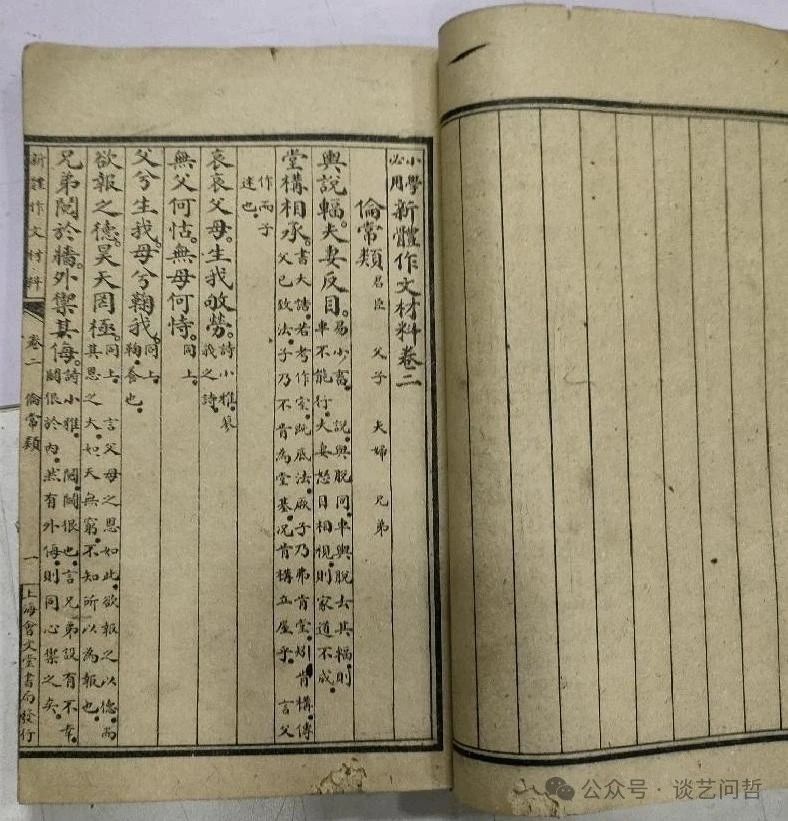 我的小學在本村,初中便去離家三十里外的縣城一中了,每周方可回家一次;高中考取位于地區駐地的一家省級中學,離家一百余里,兩三個月才能回一次家。記得每次還家,父親總會與我聊天到夜半,從家史村史到國家社會,從孔孟老莊到琴棋書畫,暢所欲言,無所不談。至今還記得父親教我的幾條經典語錄,分別是:“出必告,反必面”(《弟子規》)、“事父母幾諫”(《論語》)、“父有爭子,則身不陷于不義”(《孝經》)。當時并不曉得文獻出處,父親只告知其中立身處世的道理。后來才知道父親是從一套民國印行的線裝書《新體作文材料》上來的,這套書應該是父親研習經典的一套收藏。其書雖標明“小學必用”,卻是按天文歲時、倫常交友、言語行事等分為若干類,從經傳諸子中挑選經典語錄匯編而成,是一部質量很高的經典讀本。父親看似無意的“聊天”,實則是為子女開設的“家庭文化講堂”,讓我們自幼就能受到傳統經典的滋養。最近這些年,我創辦“習之堂儒學館”,舉辦系列文化展覽,其中就有諸種先君的手澤;為家人開設《學而國學小講堂》,又把父親當年教授給我的經典語錄講給女兒聽,實現了一家三代的家庭文化傳承。