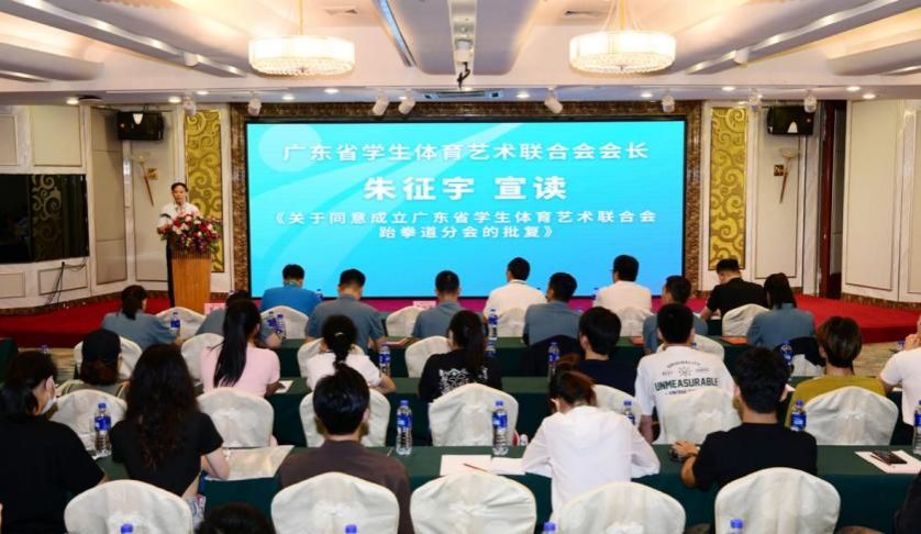 廣東省學生體育藝術聯合會會長朱征宇宣讀了《關于同意成立廣東省學生體育藝術聯合會跆拳道分會的批復》。他希望跆拳道分會要加強對小學、中學、大學的跆拳道教練員和裁判員的培訓,通過舉辦相關賽事,推動跆拳道事業的發展。