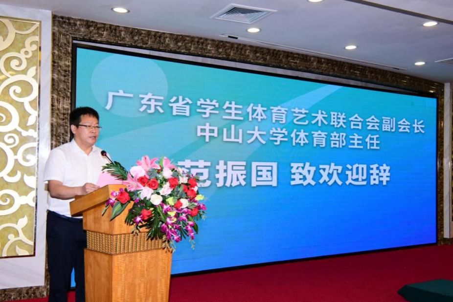 中山大學體育部主任范振國首先致歡迎辭,向廣東省教育廳、省學體藝聯以及各會員單位對跆拳道事業發展的支持表示衷心感謝。作為廣東省學生體育藝術聯合會跆拳道分會掛靠單位,中山大學將進一步推廣普及跆拳道運動,發揮跆拳道運動在立德樹人中的重要作用,培養德智體美勞全面發展的人才,使廣東省高校大學生跆拳道運動的事業發展更上一層樓。