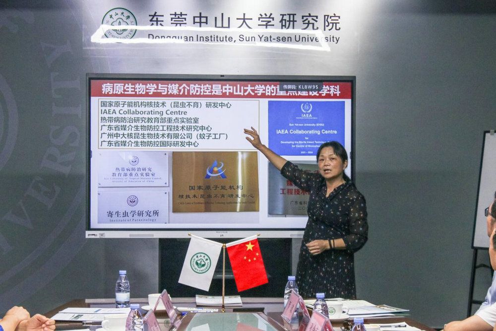 聽取匯報后,劉華副總干事高度肯定研發中心在SIT控制蚊媒技術領域取得的重大成果,并指出中山大學要充分利用國家原子能機構研發中心和國際原子能機構協作中心的高水平平臺和資源優勢,進一步做大做強核技術應用,并希望在廣東首先做出一個示范點,如“無蚊小鎮”的打造。同時,劉華表示目前其正在向國家國際發展合作署申請援助資金協助斯里蘭卡團隊開展SIT控制伊蚊項目,并希望后續中山大學積極對接項目進展,做好技術轉移服務,為發展中國家提供更多的核技術在重要熱帶病防控的應用支持,為服務國家重大戰略需求貢獻中大人的智慧。