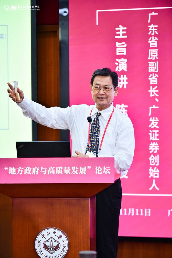 廣東省原副省長、廣發證券創始人陳云賢圍繞“《中觀經濟學》視角中‘有為政府’的內涵與界定”展開主旨演講。陳云賢以中觀經濟學作為理論支撐,剖析了地方政府在高質量發展過程中的作用。陳云賢從政府雙重屬性的角度,分析了地方政府如何通過資源生成拉動經濟增長,并闡述了國家、區域和企業之間的關聯效應。陳云賢認為,在高質量發展中,“有為政府”應該發揮“超前引領”作用,科學制定對不同類型資源的配置和調節政策,通過供給側“三駕馬車”推動經濟增長新引擎,提高整個經濟體的資源配置效率。