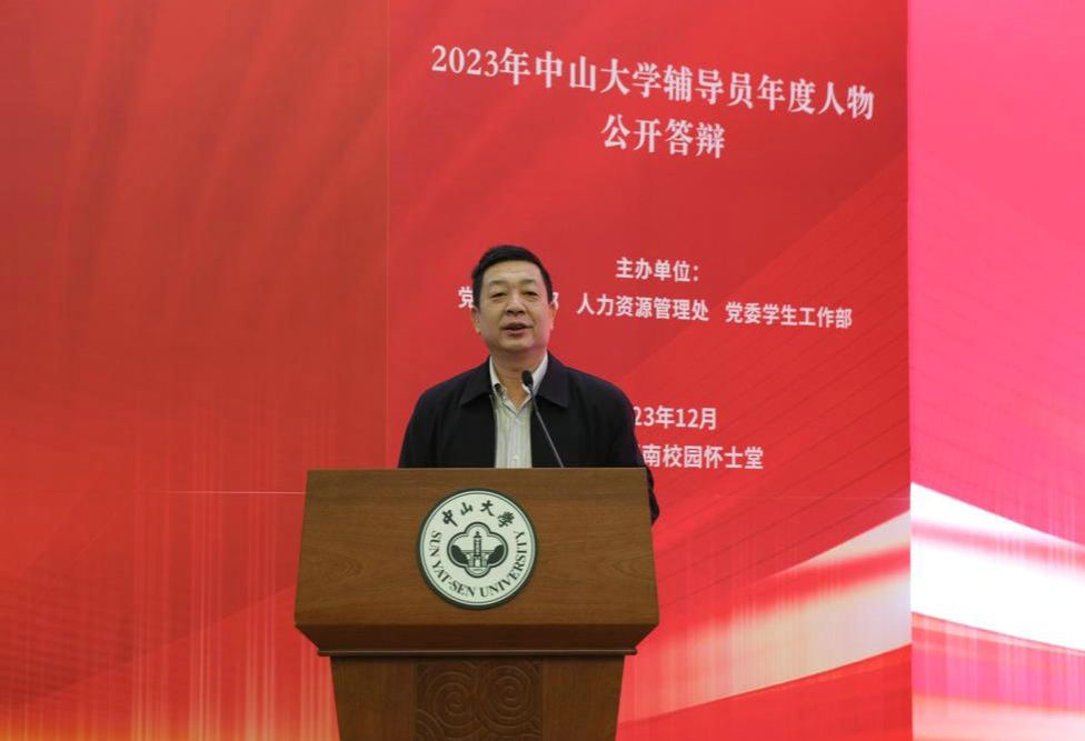 校黨委副書記余敏斌在致辭中表示,今年10月,學(xué)校啟動輔導(dǎo)員年度人物評選,遴選展示一批情懷深、思維新、視野廣,在專業(yè)化、職業(yè)化成長發(fā)展方面取得突出成果,開展學(xué)生日常思想政治教育和管理工作有特色、有亮點(diǎn)、有創(chuàng)新的輔導(dǎo)員先進(jìn)典型模范,旨在加強(qiáng)院際工作交流,展現(xiàn)新時代輔導(dǎo)員躬耕不輟的師者風(fēng)貌,引導(dǎo)廣大輔導(dǎo)員為加快建設(shè)教育強(qiáng)國矢志奮斗,為著力培養(yǎng)擔(dān)當(dāng)民族復(fù)興大任的時代新人貢獻(xiàn)力量。他指出,學(xué)校在建設(shè)中國特色世界一流大學(xué)的征程上不斷取得進(jìn)步,為新時期新階段高質(zhì)量內(nèi)涵式發(fā)展打下了良好基礎(chǔ)。希望全體輔導(dǎo)員進(jìn)一步提高政治站位、增強(qiáng)政治責(zé)任,賡續(xù)中大學(xué)工的優(yōu)良傳統(tǒng),砥礪奮進(jìn)、矢志拼搏,為培養(yǎng)德智體美勞全面發(fā)展的社會主義建設(shè)者和接班人貢獻(xiàn)力量,以優(yōu)異的成績?yōu)榘倌晷c獻(xiàn)禮。