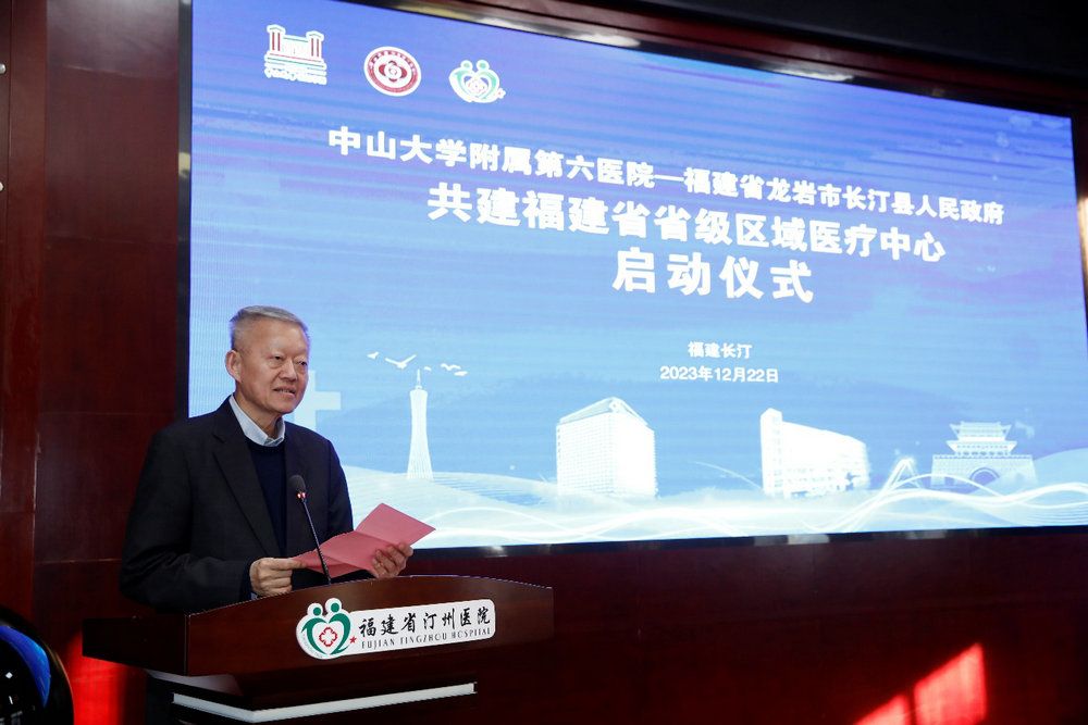中大新聞網(wǎng)訊(通訊員張婷婷、戴希安、樂虞瑩)12月22日下午,中山大學附屬第六醫(yī)院-福建省長汀縣人民政府共建福建省省級區(qū)域醫(yī)療中心在福建省汀州醫(yī)院啟動,中山大學黨委書記陳春聲出席儀式并致辭。當天,附屬第六醫(yī)院院長文衛(wèi)平以及肛腸外科、泌尿外科、婦產(chǎn)科、運動康復醫(yī)學科等科室主任在汀州醫(yī)院成立“名醫(yī)工作室”,附屬第六醫(yī)院黨委書記李漢榮牽頭成立“黨業(yè)融合創(chuàng)新工作室”。