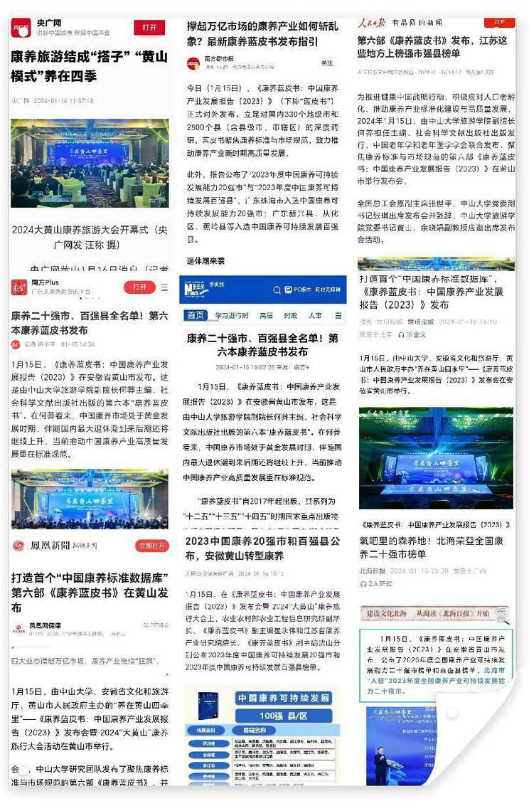 因第六部《康養(yǎng)藍皮書》建立了與康養(yǎng)產業(yè)密切相關,涵蓋國家、行業(yè)、地方、團體最新標準的“中國康養(yǎng)標準數據庫”,公布了2023年度中國康養(yǎng)可持續(xù)發(fā)展20強市和2023年度中國康養(yǎng)可持續(xù)發(fā)展百強縣榜單,研判了未來康養(yǎng)產業(yè)發(fā)展的最新趨勢,引起業(yè)界矚目和近200家媒體爭相報道。