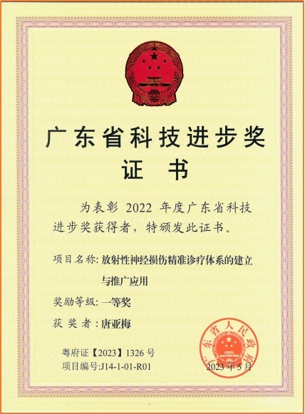 研究成果“放射性神經損傷精準診療體系的建立與推廣應用”獲2022年度廣東省科技進步獎一等獎