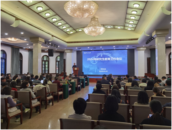中大新聞網(wǎng)訊(通訊員王菁)3月15日下午,中山大學(xué)2024年研究生教育工作會(huì)議在廣州校區(qū)南校園懷士堂召開。副校長(zhǎng)劉濟(jì)科教授出席會(huì)議并講話,各研究生培養(yǎng)單位行政正職負(fù)責(zé)人、分管研究生教育的行政副職負(fù)責(zé)人、研究生秘書,研究生教育督導(dǎo)組組長(zhǎng)、副組長(zhǎng),醫(yī)學(xué)教育處領(lǐng)導(dǎo)及同事,研究生院全體領(lǐng)導(dǎo)及同事約250人參加會(huì)議。會(huì)議由研究生院培養(yǎng)與質(zhì)量管理處處長(zhǎng)劉鵬圖主持。