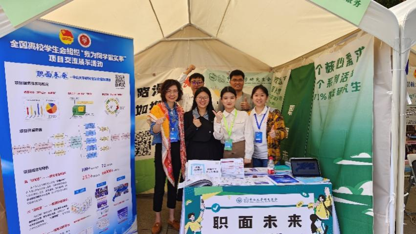 中大新聞網(wǎng)訊(通訊員顧文明、丁莉文)3月22日至24日,由共青團(tuán)中央指導(dǎo),全國學(xué)聯(lián)主辦,團(tuán)貴州省委、貴州省學(xué)聯(lián)、貴州師范大學(xué)承辦的全國高校學(xué)生會(huì)組織“我為同學(xué)做實(shí)事”項(xiàng)目交流展示活動(dòng)在貴州舉辦,來自全國的300個(gè)學(xué)生會(huì)組織服務(wù)同學(xué)項(xiàng)目參與交流展示。團(tuán)中央書記處第一書記阿東出席展示活動(dòng)并與同學(xué)們交流,肯定了我校研究生會(huì)服務(wù)項(xiàng)目的服務(wù)成效與項(xiàng)目特色。“職面未來——中山大學(xué)研究生就業(yè)服務(wù)項(xiàng)目”獲評(píng)全國高校學(xué)生會(huì)組織“我為同學(xué)做實(shí)事”精品服務(wù)項(xiàng)目,并作為全國高校研究生會(huì)項(xiàng)目代表參與閉幕式“服務(wù)同學(xué)青年說”討論環(huán)節(jié)。