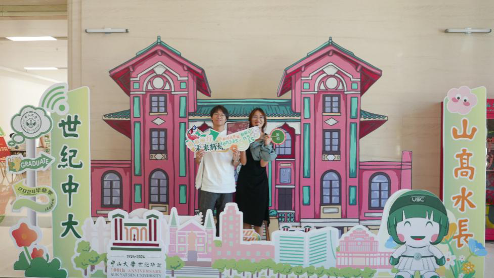 參訪者們紛紛在校園內的留影板前合影,記錄下與中山大學深圳校區的美好回憶,留下珍貴的紀念。