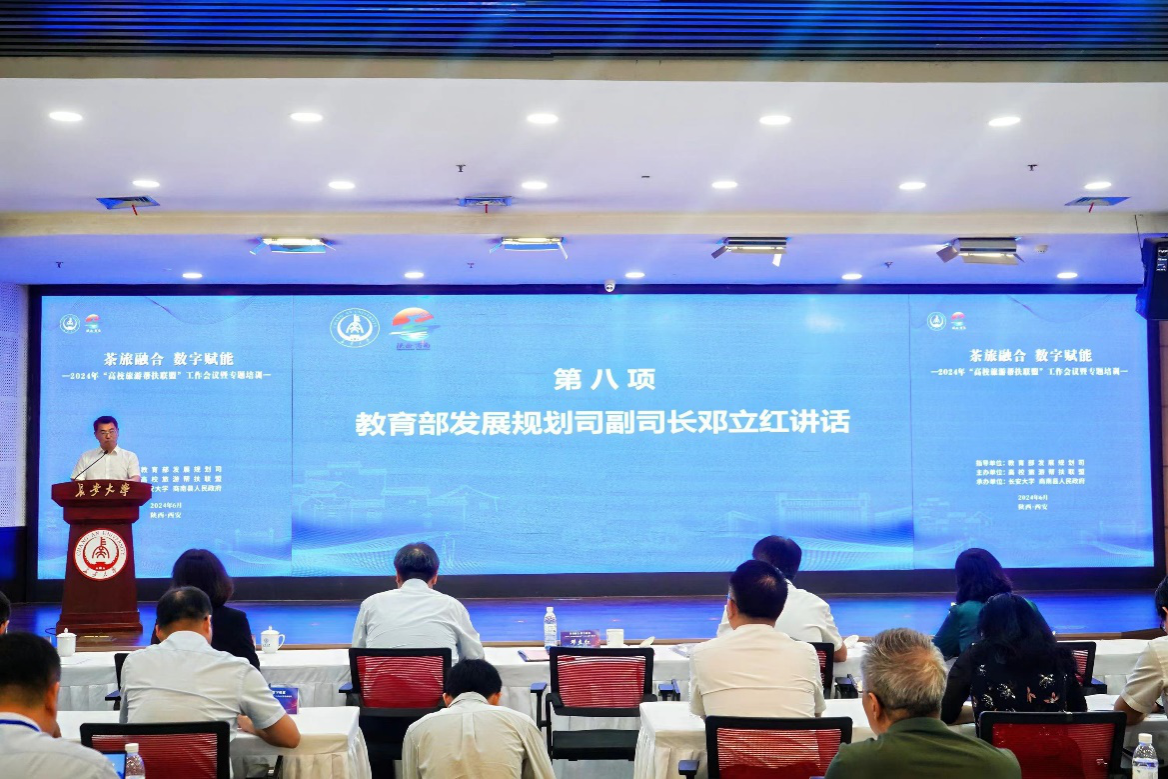 教育部發展規劃司副司長鄧立紅發表講話,充分肯定了本次會議和培訓的主題、意義以及聯盟工作的成效,并對做好下一步幫扶工作提出了三點要求:一是要在保持常態化幫扶的戰略定力上做表率;二是要在以農文旅深度融合助力鄉村全面振興上顯身手;三是要在深入探索組團式幫扶有效機制上打頭陣。