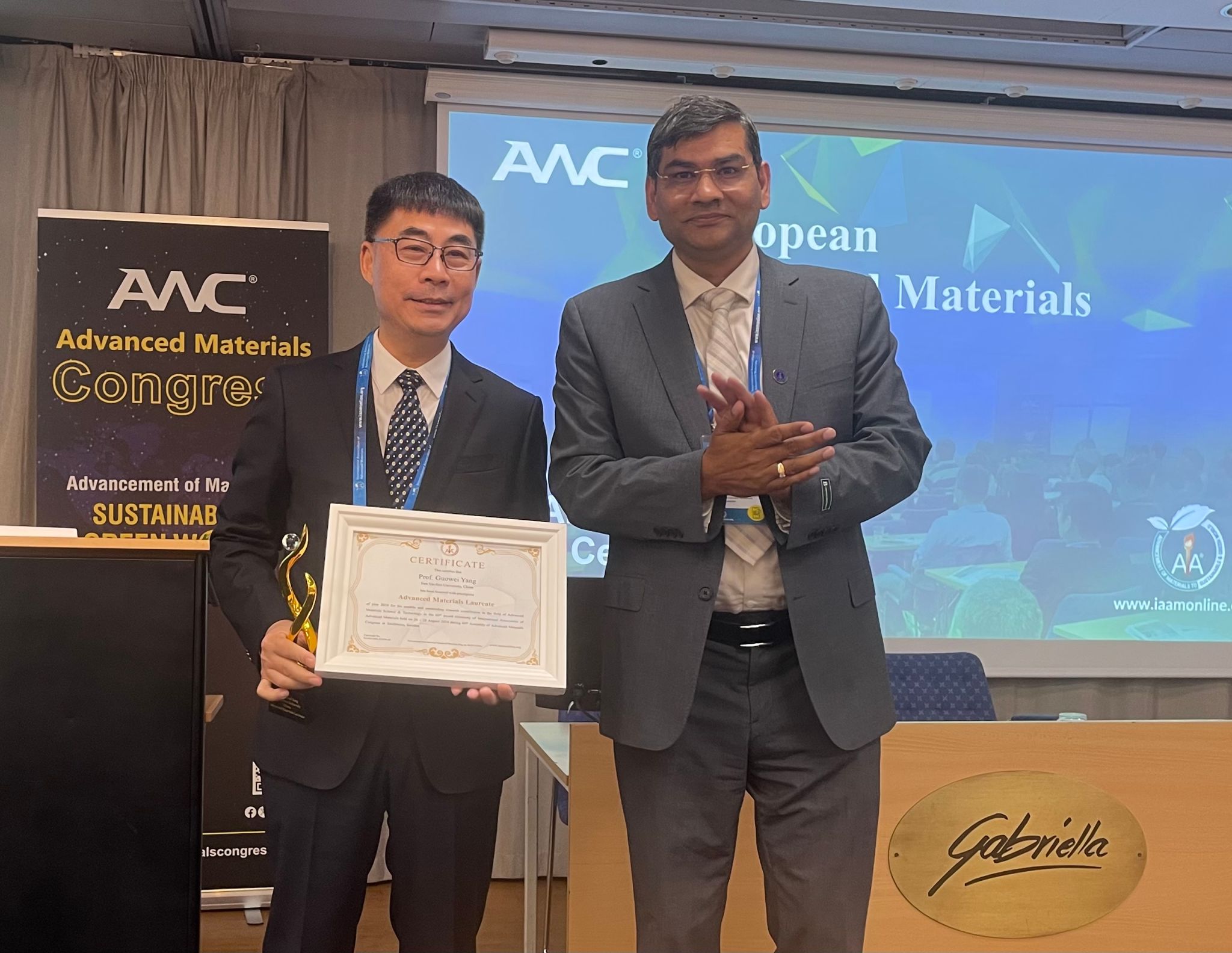 中大新聞網(wǎng)訊(通訊員許俊卿)日前,在瑞典斯德哥爾摩召開的歐洲先進(jìn)材料年會(huì)上(European Advanced Materials Congress),材料科學(xué)與工程學(xué)院楊國(guó)偉教授榮獲國(guó)際先進(jìn)材料終身成就獎(jiǎng),并應(yīng)邀在年會(huì)上以“第三種碳:白碳”為題作了獲獎(jiǎng)演講。本次年會(huì)有來(lái)自世界39個(gè)國(guó)家和地區(qū)的科學(xué)家參加。