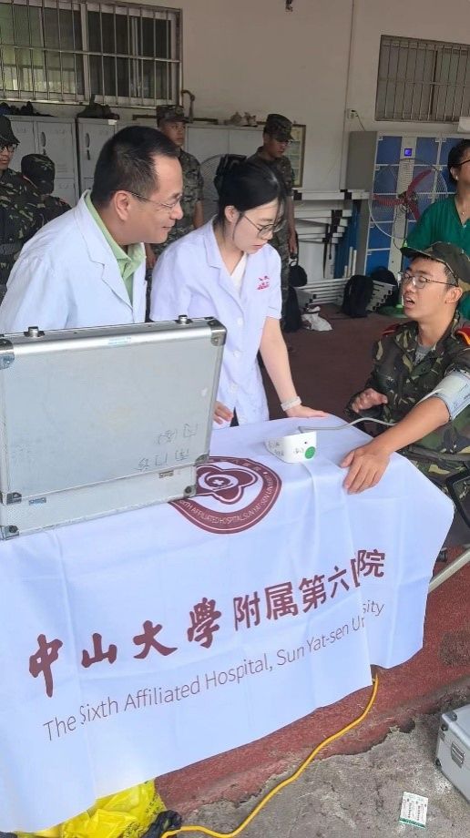 全體醫護人員們以滿腔的熱情與專業的態度,穿梭于訓練場與醫療站點之間,用實際行動詮釋了“醫者仁心”的深刻內涵。從簡單的擦傷到復雜的急癥,每一份不適都被他們細心記錄,妥善處理,確保學生能夠在安全、健康的狀態下環境中完成軍訓任務。更為貼心的是,當遇到需要緊急救治或進一步治療的情況時,醫療團隊會迅速啟動應急預案,由保衛處接應學生,醫護人員通過救護車將學生安全轉診至醫院急診科,確保學生得到及時、專業的救治。這一系列舉措,彰顯了中山大學醫療系統的強大實力與深厚底蘊,也是各附屬醫院團結協作的生動寫照。