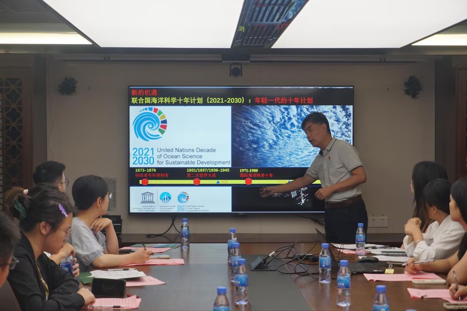 于衛(wèi)東教授作《以高水平人才培養(yǎng)和前沿科學(xué)研究為抓手推動(dòng)海洋強(qiáng)國(guó)建設(shè),建設(shè)人類命運(yùn)共同體》的輔導(dǎo)報(bào)告,介紹海洋對(duì)構(gòu)建人類命運(yùn)共同體的重要意義、海洋科學(xué)與人才和科技的關(guān)系。他強(qiáng)調(diào),要深入學(xué)習(xí)貫徹黨的二十屆三中全會(huì)精神,抓住聯(lián)合國(guó)海洋科學(xué)十年計(jì)劃這一重要機(jī)遇,加強(qiáng)國(guó)際合作,以高水平人才培養(yǎng)和前沿科學(xué)研究為抓手用好“中山大學(xué)”號(hào),推動(dòng)海洋強(qiáng)國(guó)建設(shè),積極踐行人類命運(yùn)共同體理念。