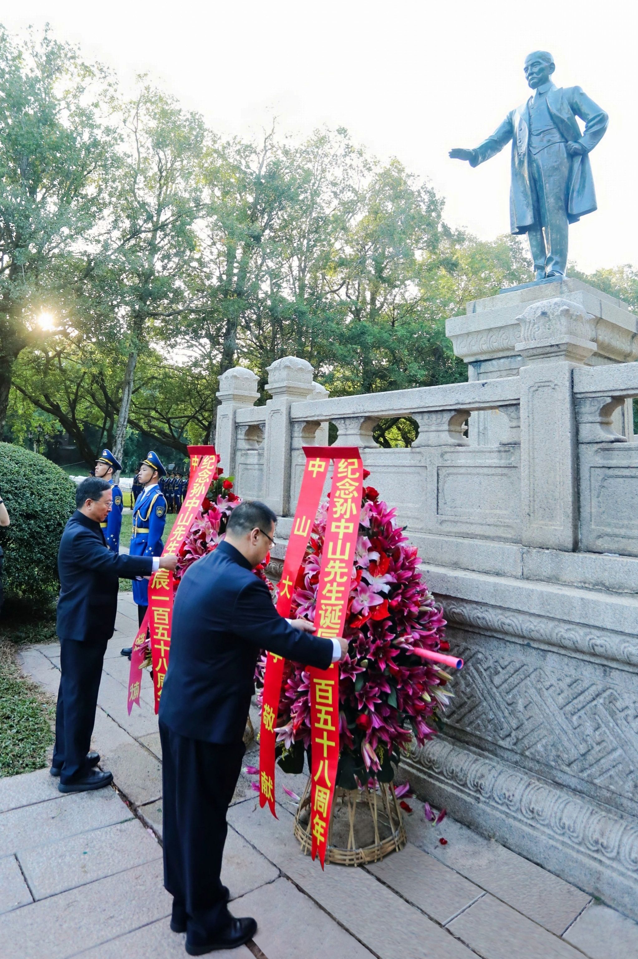 校黨委書記朱孔軍、校長高松,校黨委副書記張琪,副校長劉濟科,副校長鄭躍,副校長邰忠智分別在五個校區(園)主禮獻花儀式,向孫中山先生致敬,為中山大學慶生。學校黨委副書記國亞萍,醫學部綜合管理處處長龍波,東校園管理委員會李明章主任,珠海校區管理委員會劉梅主任,深圳校區管委會溫光浩常務副主任分別主持了廣州校區南校園、北校園、東校園,珠海校區和深圳校區的儀式。學校全體校領導,各職能部門、院系及附屬單位負責人和師生代表參加儀式。