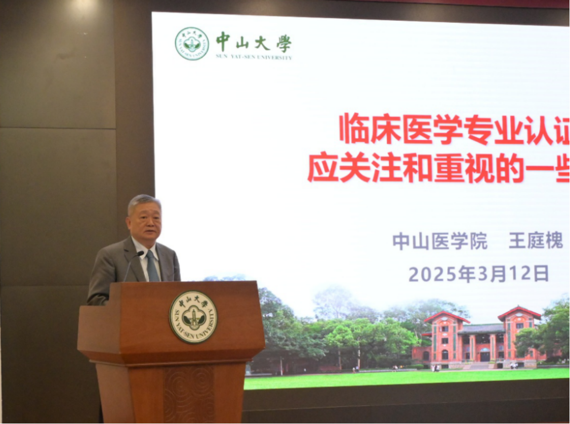王維民教授從國內(nèi)外臨床醫(yī)學(xué)專業(yè)認(rèn)證工作的發(fā)展與現(xiàn)狀切入,闡述了認(rèn)證對醫(yī)學(xué)教育改革與發(fā)展的引領(lǐng)性作用,介紹了第二輪專業(yè)認(rèn)證相關(guān)關(guān)鍵領(lǐng)域的變化,并結(jié)合中山大學(xué)第一輪專業(yè)認(rèn)證的專家意見,對照認(rèn)證標(biāo)準(zhǔn)為學(xué)校迎評工作的重點方向,提出針對性建議和指導(dǎo)。