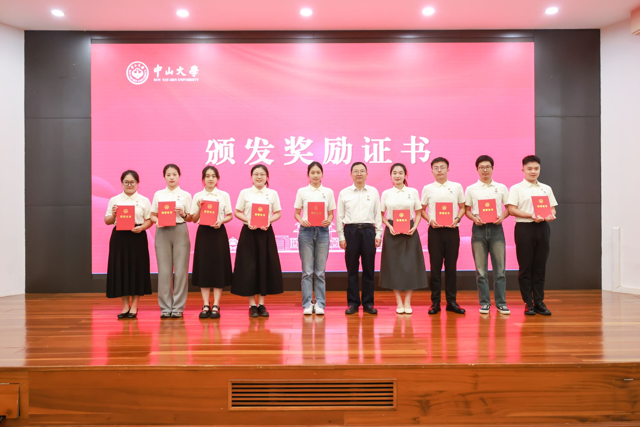 張琪宣讀《中山大學關(guān)于表彰和獎勵2025年赴基層就業(yè)畢業(yè)生(第一批)的通報》,表彰鼓勵中山大學赴基層就業(yè)的2025屆畢業(yè)生。高松為獲獎學生頒獎。