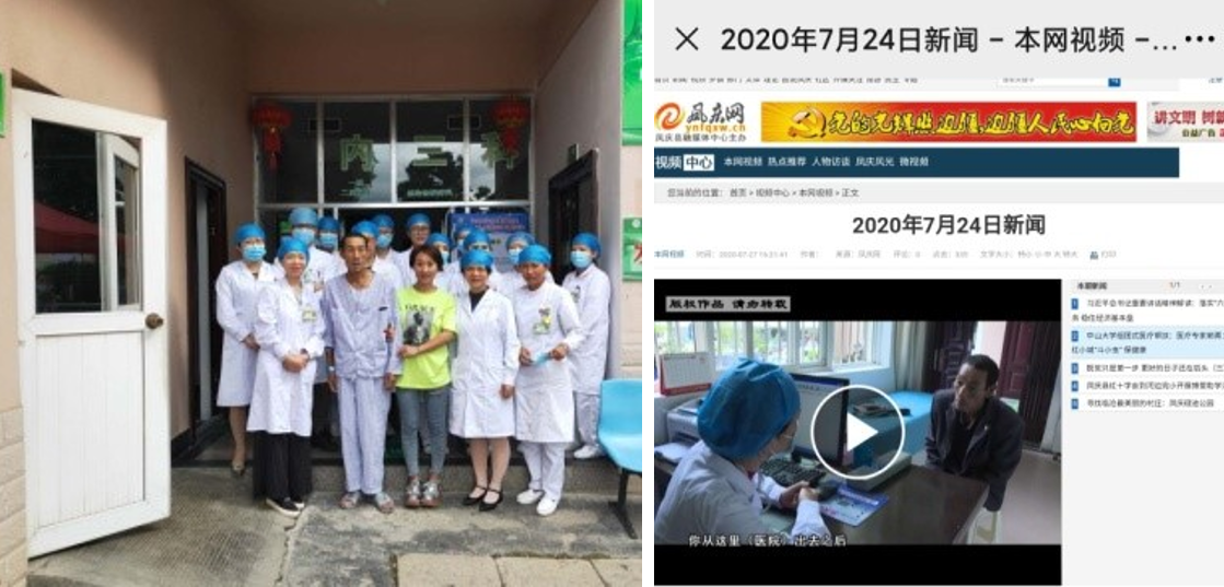 左圖:賴菁與出院患者合影;右圖:賴菁先進事跡在鳳慶新聞網報道(來源:附屬第三醫(yī)院)