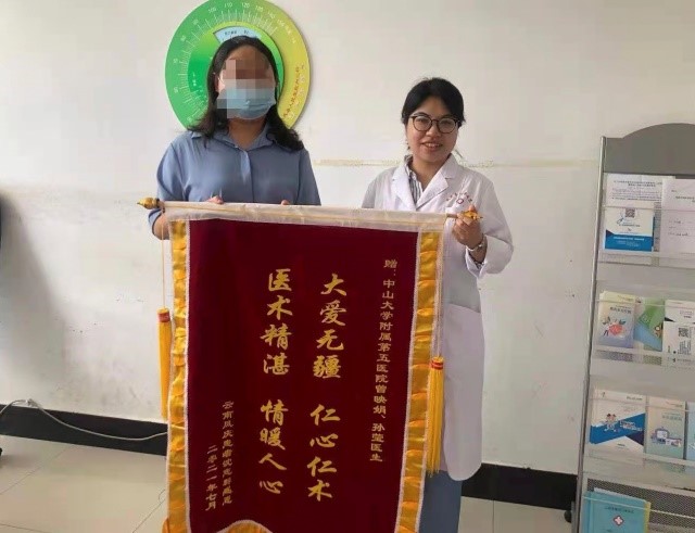 患者為曾映娟和孫瑩送錦旗(來(lái)源:附屬第五醫(yī)院)