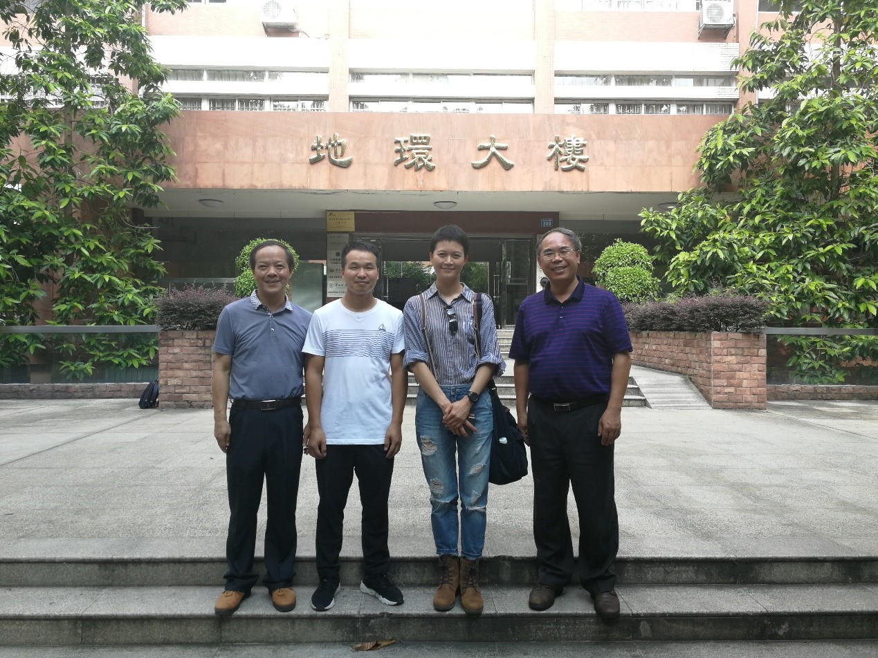 韋慧曉與學院教師在地環大樓合影(左一為其導師陳炳輝)(來源:地球科學與工程學院)