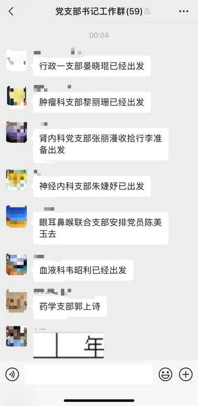 微信工作群截圖(來源:附屬第八醫院)