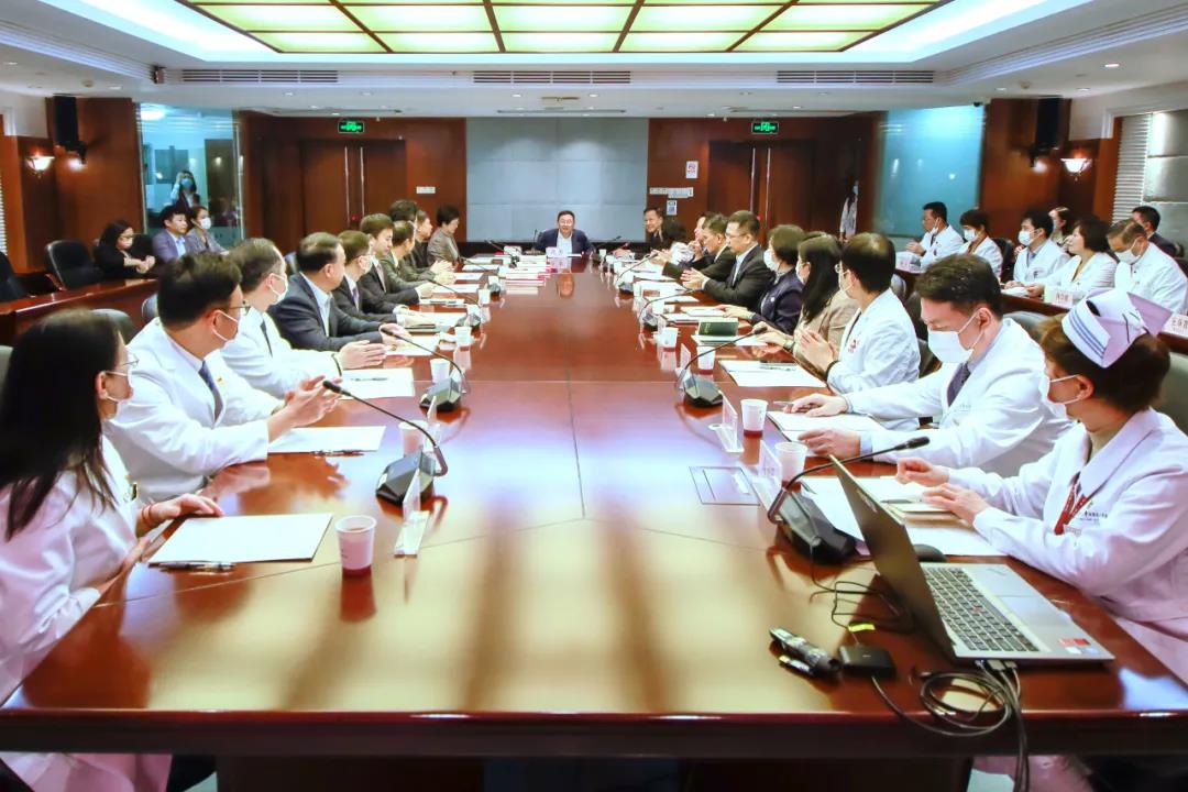 陳春聲書記提出了幾點殷切希望:一是加強黨建引領,抓好醫院文化建設,高度重視政治安全、意識形態工作。醫院要堅持黨委領導下的院長負責制,使醫院事業行穩致遠。二是勇攀高峰,扎根中國大地辦世界名院,瞄準國家級、世界級成就,創造更大的輝煌。三是高度重視人才培養和醫學教學,把人才培養放在醫院工作的重要位置,走創新道路,將中山醫優良傳統發揚光大,建設“名醫搖籃”。四是做好人才引進工作,充分利用建設粵港澳大灣區高水平人才高地的政策優勢,加大引才力度,引進更多高水平人才。
