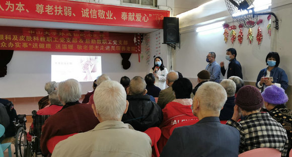 中大新聞網(wǎng)訊(通訊員黃睿)為踐行以人民健康為中心的理念,將黨史學(xué)習(xí)教育成果落到實處,積極響應(yīng)“我為群眾辦實事”的實踐要求,近日,中山大學(xué)孫逸仙紀(jì)念醫(yī)院眼科及皮膚科教職工黨支部、后勤教職工黨支部聯(lián)合開展“我為群眾辦實事——送健康、送溫暖,敬老愛老走進(jìn)昊琛敬老院”活動,為老人們送醫(yī)送藥送健康。