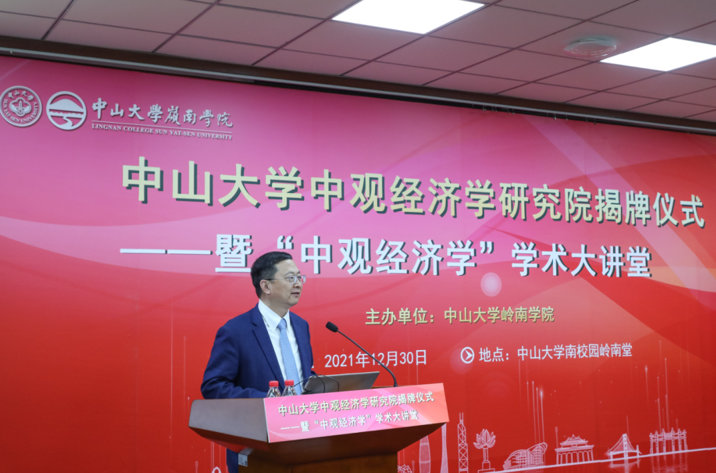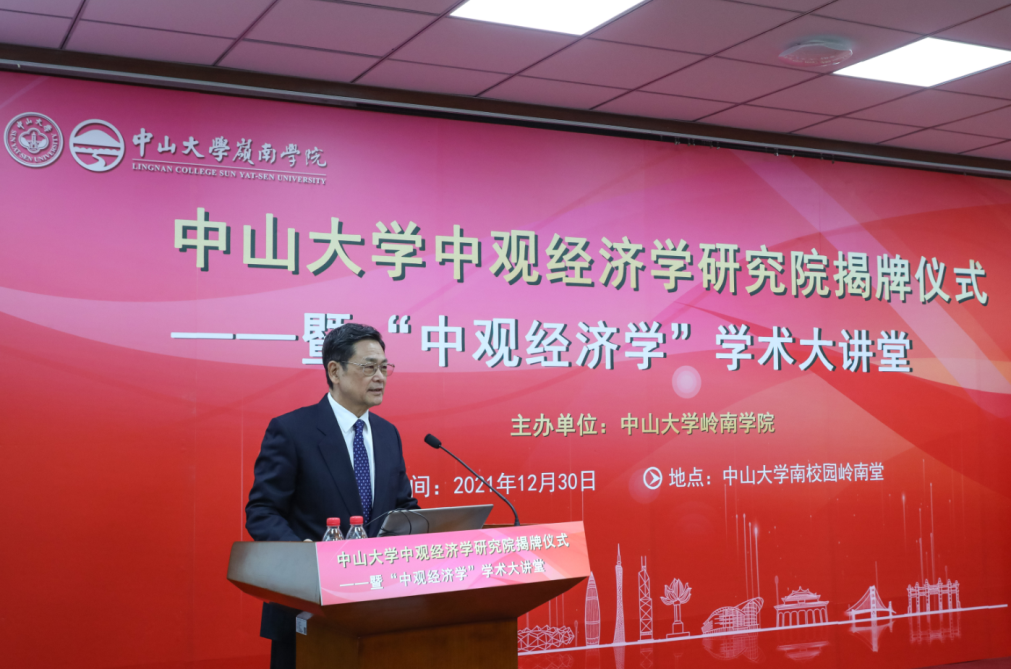 中大新聞網1月3日廣州電(通訊員陳菊紅)2021年12月30日,中山大學中觀經濟學研究院揭牌儀式暨“中觀經濟學”學術大講堂在中山大學南校園嶺南堂三樓講學廳成功舉行。中山大學黨委書記陳春聲教授、中山大學校長高松院士、廣東省人民政府原副省長陳云賢教授、中山大學副校長兼嶺南學院院長李善民教授,嶺南學院黨委書記黃毅同志、副院長魯曉東教授、副院長劉彥初副教授等出席了本次活動。揭牌儀式由中山大學副校長兼嶺南學院院長李善民教授主持。