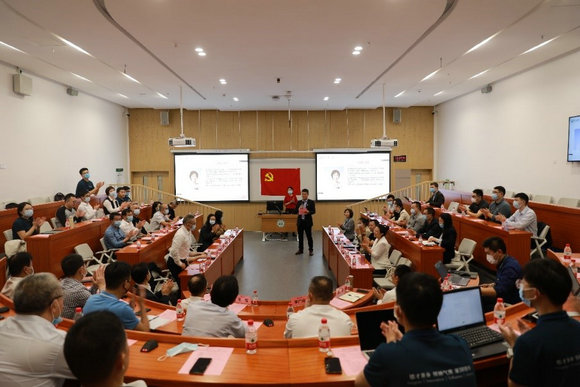活動(dòng)第二站,商學(xué)院直屬黨支部全體黨員和全體研究生同學(xué),電子與通信工程學(xué)院范濤書記與賽格集團(tuán)黨委來賓落座西區(qū)公共教學(xué)樓教室,共同聆聽專題輔導(dǎo)報(bào)告。