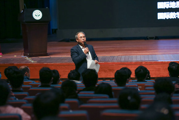 在本次課堂上,成秋明院士首先運用我國天問一號工程、海上可燃冰開采和科考地鉆的成就分析了21世紀人類在“上天、下海、入地”三大方面的壯舉,深入淺出地介紹了什么是地球科學。隨后,成院士以數字地球科學為背景,從地球系統演化、重大事件發生、有用物質循環、資源能源利用等相關內容,介紹地球科學的奧秘與用途,并結合當前“雙碳”目標的提出,給大家解析了地球深部過程與資源環境效應的密切關系。成院士在授課過程中還向同學們分享了學術研究與提升自身綜合素質的經驗,即在提高學術水平和擴大國際影響的同時,要善于培養自身管理素質及交流能力、掌握科技規則和踐行科技文化、尊重科學價值和奉行合作精神。精彩的導學課獲得現場同學一次次熱烈的掌聲。