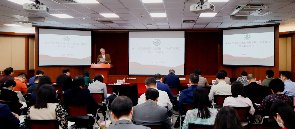 中大新聞網12月14日廣州電(通訊員周妍)12月8日,中山大學黨委第七輪巡視工作動員部署會暨培訓會在廣州校區南校園召開。學校黨委書記陳春聲,學校黨委副書記、紀委書記林東偉,學校黨委巡視工作領導小組成員,學校黨委第七輪11個被巡視單位黨政主要負責人以及全體巡視組成員參加會議。會議由學校黨委副書記、紀委書記林東偉主持。