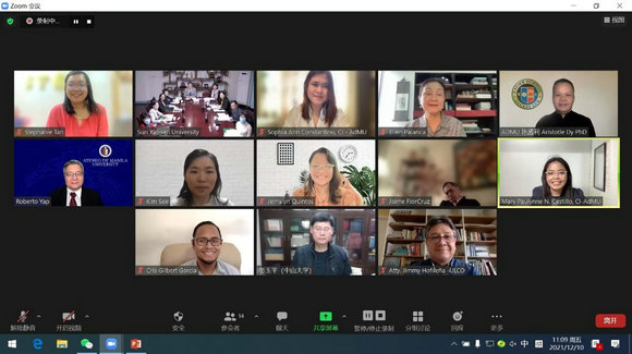 在菲律賓亞典耀大學孔子學院的會議中,外方院長Dr. Palanca Huang首先作了工作報告。2021年,孔子學院各項工作穩步推進,開展了線上漢語教學及文化課程;組織了20多場公共論壇及線上研討會;通過舉辦本土教師在線培訓、建立中英雙語雙專業學士項目、菲律賓漢語國際教育碩士項目及國際漢語教師資格證考試與培訓等業務,大力推動菲律賓本土漢語教師的培養;同期開展中菲關系課題研究,并拍攝系列紀錄片《蘇祿與中國:中菲關系的歷史與現在》等,均取得喜人成績。