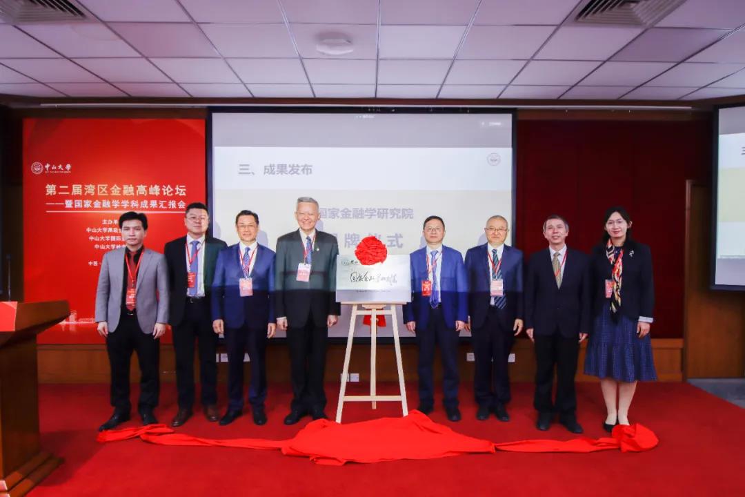 中山大學高級金融研究院名譽院長陳云賢教授、中山大學黨委書記陳春聲教授、校長高松院士、副校長李善民教授、高級金融研究院領導黃新飛、李廣眾、楊子暉、王彩萍共同為國家金融學研究院揭牌。