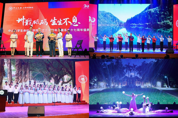 慶典大會上首次放映了由學院師生演出的院史微電影《行·先》,學生與老一輩優秀黨員進行了信仰對話,合唱了《生物系歌》。大家欣賞了師生創作的詩朗誦《祝福你,生科人》和歌舞表演《燈火里的中國》。最后,伴隨著中大校友之歌,慶典大會圓滿落幕。生命科學學院將站在時代的新起點上,展現新風貌,開啟新征程,創造新輝煌。