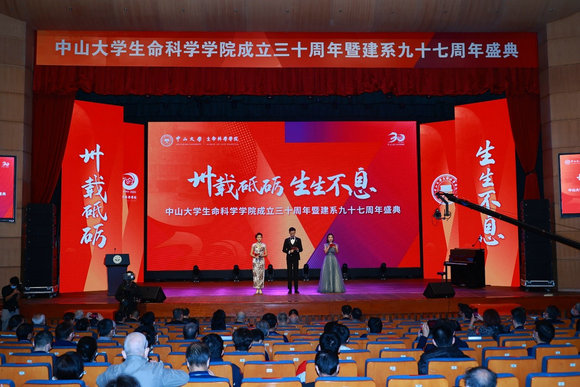 中大新聞網12月1日廣州電(通訊員蔡南喬)11月27日,中山大學生命科學學院在梁銶琚堂舉行生命科學學院成立三十周年暨建系九十七周年慶典大會。中國工程院院士林浩然,中國工程院院士陳松林,中山大學副校長蘭平,中山大學原副校長李寶健,中山大學原副校長魏聰桂,中山大學生命科學學院原榮譽院長曾憲梓之子、金利來集團有限公司主席兼行政總裁曾智明,兄弟院校代表,學校各職能部門負責人和各屆校友及學院師生代表近400人參加大會。