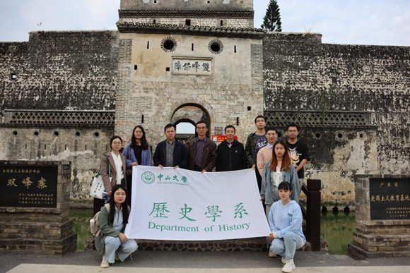 考察團在真仁村中大辦學舊址旁合影(來源:歷史學系)