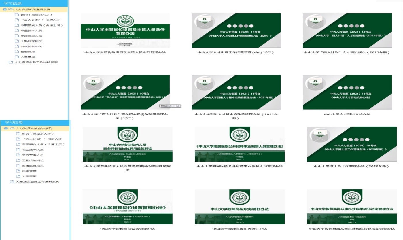制度的生命力在于執行。為進一步強化制度的執行,人力資源管理處注重政策宣傳解讀與執行落實的引導。2021年上半年以來,先后組織開展25個新制度的系列政策宣講,對人事秘書進行系統化的業務培訓。為進一步強化制度政策在實際工作中的落實落地,讓二級單位能“常學常用、日新又新”,讓日常開展人事人才工作“有章可循、按圖索驥”,人力資源管理處在既有培訓與宣講基礎上,創新“互聯網+”新思維,在學校人力資源管理信息系統中推出“人事加油站”項目,將制度文件匯編整理上線、政策宣講打造成視頻課件,讓人事人才工作隊伍更加便捷地“加油充電長本事”。目前,“人事加油站”已上線25個人事人才制度的宣講視頻和61個制度文件,為人事人才工作規范開展提供指引。
