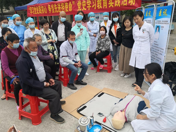 4月10日,學(xué)院黨委組織師生黨員到三水區(qū)南山鎮(zhèn)為基層群眾開展義診和急救科普宣傳(來源:護理學(xué)院)