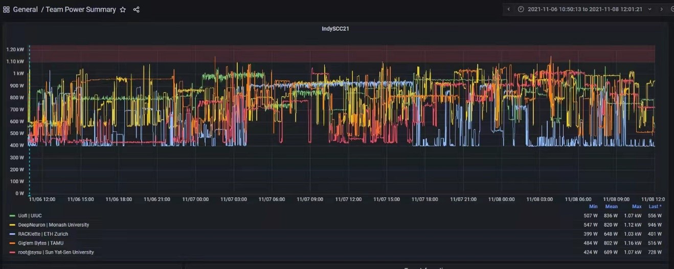 IndySCC是本次超算大會新增的學生高性能計算競賽項目,參賽隊伍來自伊利諾伊大學香檳分校、蘇黎世聯邦理工學院等世界級計算機強校,我校戰隊是IndySCC賽事唯一的中國隊伍。本次IndySCC的比賽形式和傳統的學生超算競賽相同,參賽隊伍需要在48小時內,部署和優化經典分子動力學應用Gromacs和并行密碼破解應用John the Ripper,以及比賽開始后公布的“神秘應用”:有限差分算子加速庫Devito。參賽隊伍需要在比賽前綜合考慮,選擇集群機器的配置,比賽時合理利用有限的計算資源,并且全程將機器總功耗控制在1100w以內,在嚴格的條件下取得最佳性能。