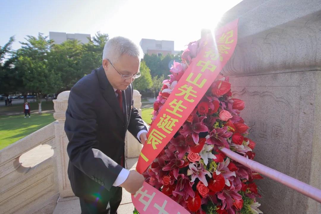 黨委書(shū)記陳春聲,校長(zhǎng)羅俊,黨委常務(wù)副書(shū)記、副校長(zhǎng)馬駿,副校長(zhǎng)蘭平,副校長(zhǎng)邰忠智分別在五個(gè)校區(qū)(園)主禮,向?qū)O中山先生致敬,為中山大學(xué)慶生。