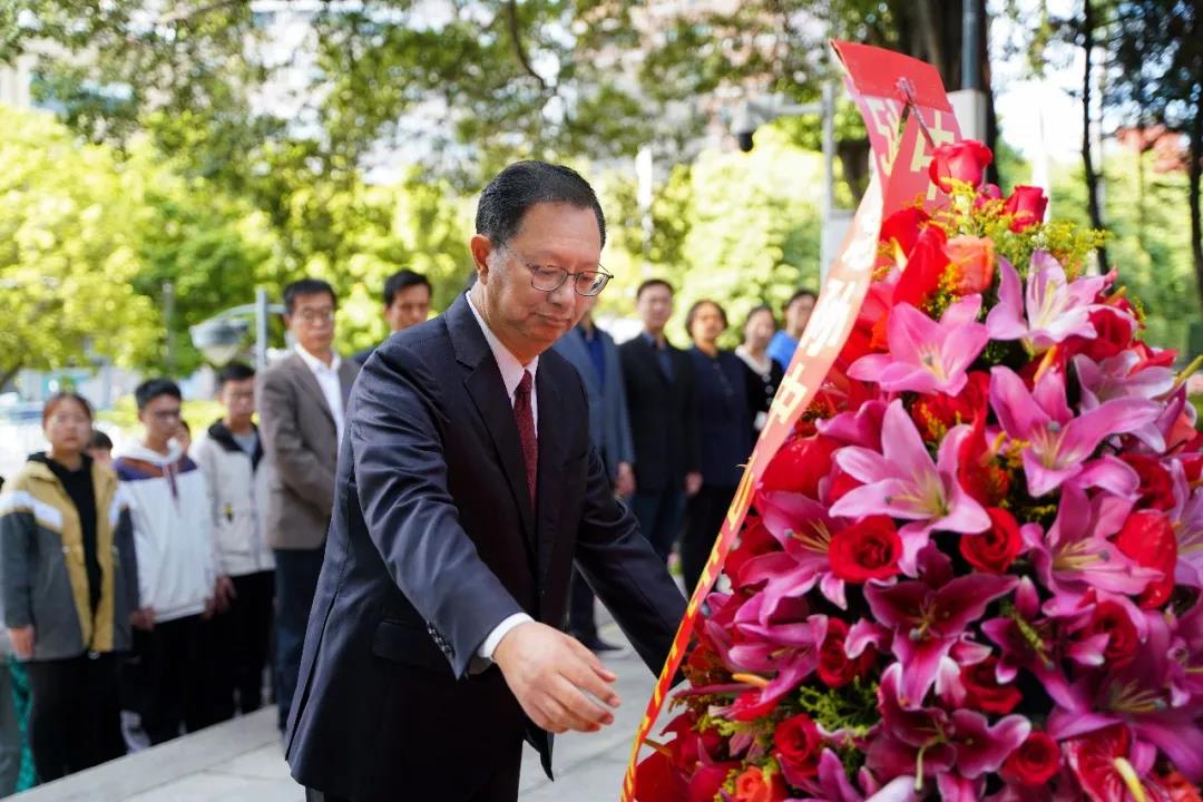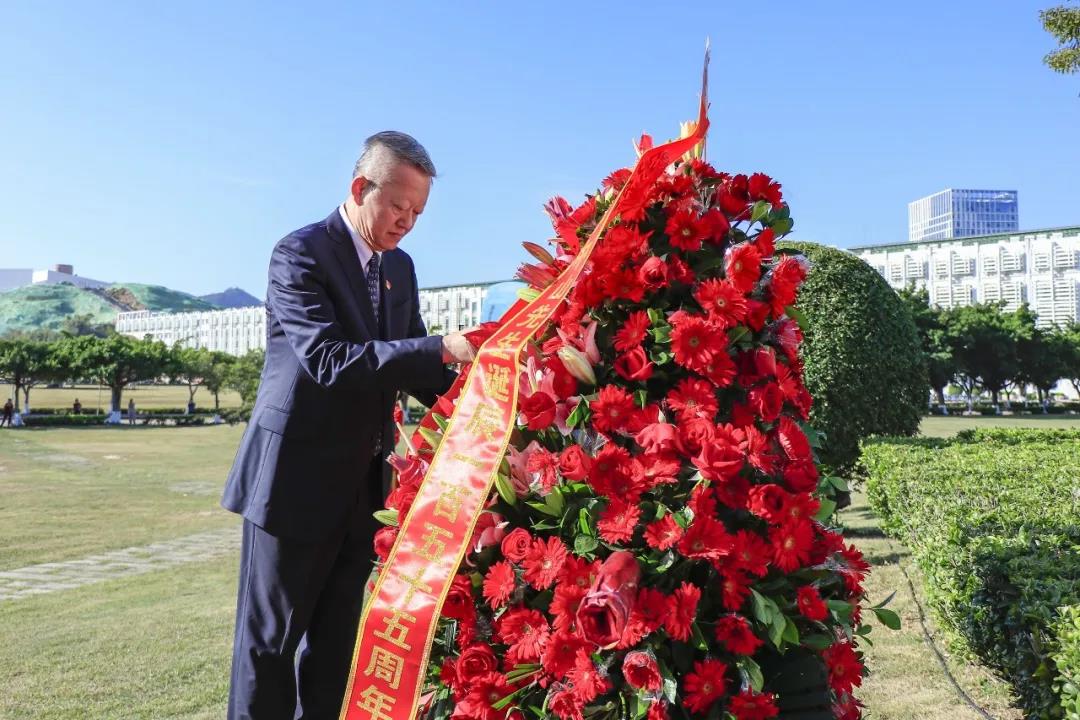 珠海校區(qū)敬獻(xiàn)花籃儀式開(kāi)始(來(lái)源:黨委宣傳部 左皓晟攝)