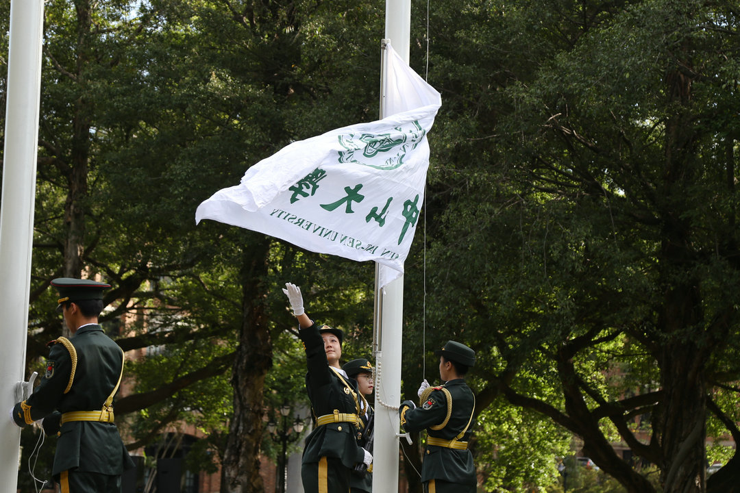艷陽(yáng)高照,秋高氣爽。在莊嚴(yán)的國(guó)歌、校歌聲中,五星紅旗和中山大學(xué)校旗先后冉冉升起、迎風(fēng)飄揚(yáng),在場(chǎng)全體師生一齊行注目禮,莊嚴(yán)肅穆、充滿敬意。
