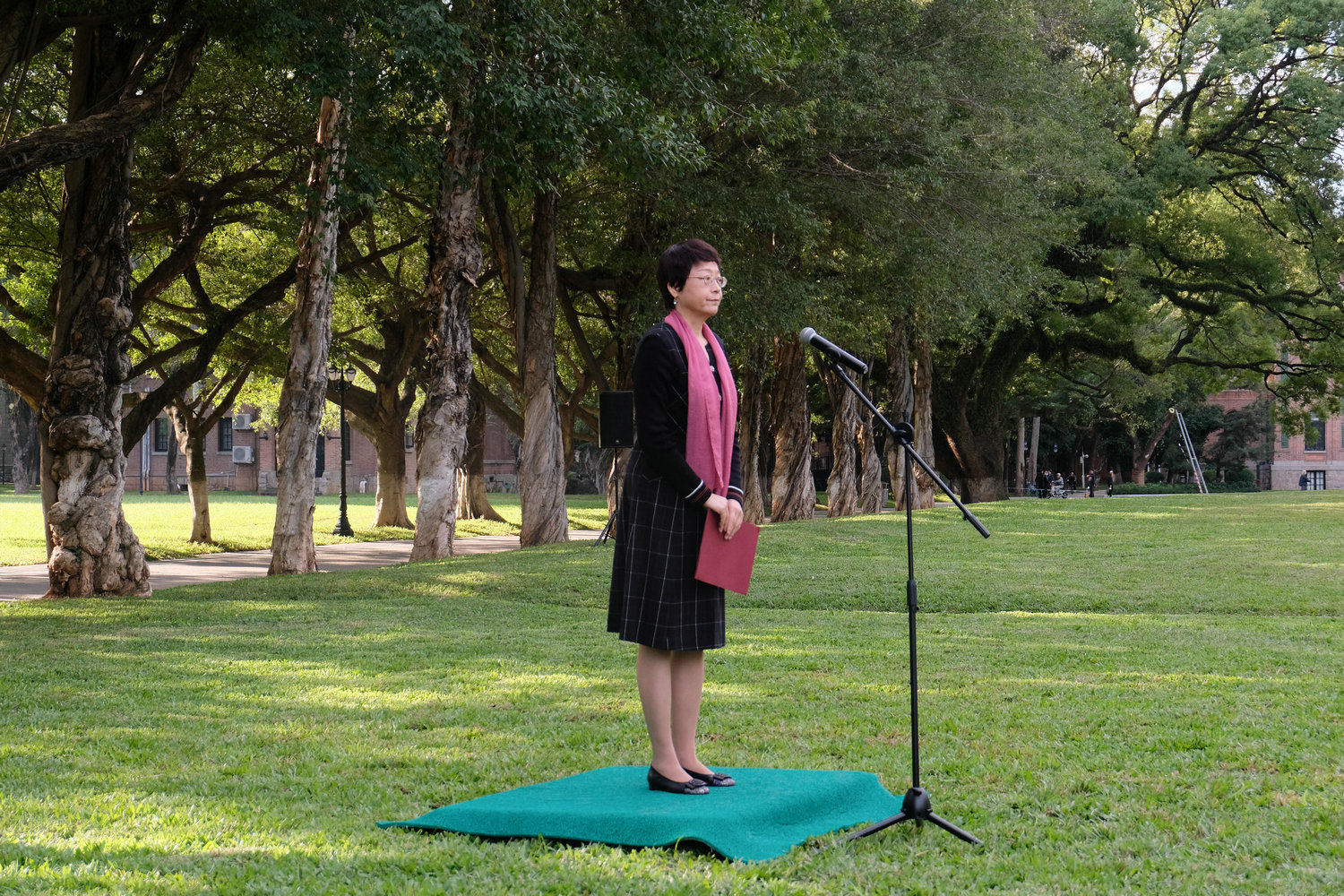 國(guó)亞萍副書(shū)記主持廣州校區(qū)南校園儀式(來(lái)源:黨委宣傳部 楊雅涵攝)